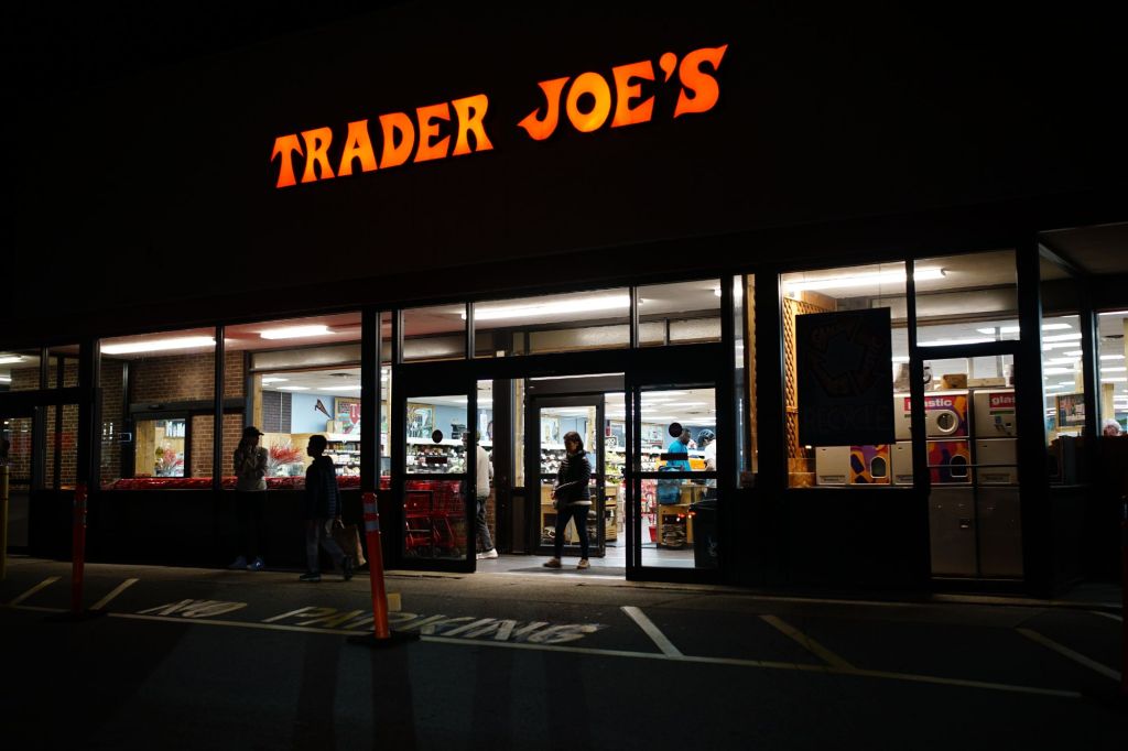 I had always wanted to go to Trader Joe’s after listening to the freakonomics podcast episode about it. In the UK, our equivalent is Aldi and Lidl. I switched back to colour for this photo as I liked the red logo at night.